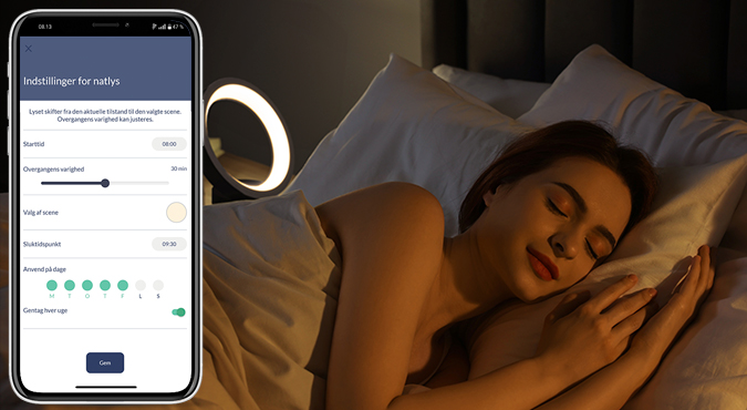 Start dagen afslappet! Den simulerede solopgang muliggør en naturlig overgang fra søvn til at vågne op. Med nattelys-funktionen vil du blive vækket blidt og nyde en behagelig start på dagen.