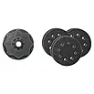 Leveres inkl. 3 slags perforeret slibepapir: 2 stk. korn 60, 2 stk. korn 80 og 2 stk. korn 180. Alle har en diameter på 115 mm.