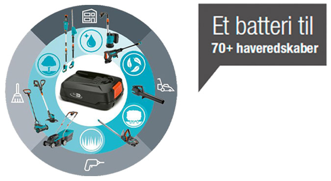 GARDENA er medstifter af Power for All-alliancen, som er en sammenslutning af de førende brands indenfor batteriprodukter. Dette betyder, at du også kan bruge dit GARDENA-batteri til over 70 forskellige værktøjer til både hus og have. Du sparer både penge og plads, og vigtigst af alt, så skåner du miljøet.