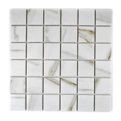 Elegant, geometrisk mosaikflise af flotte porcelænssten med marmor-look.