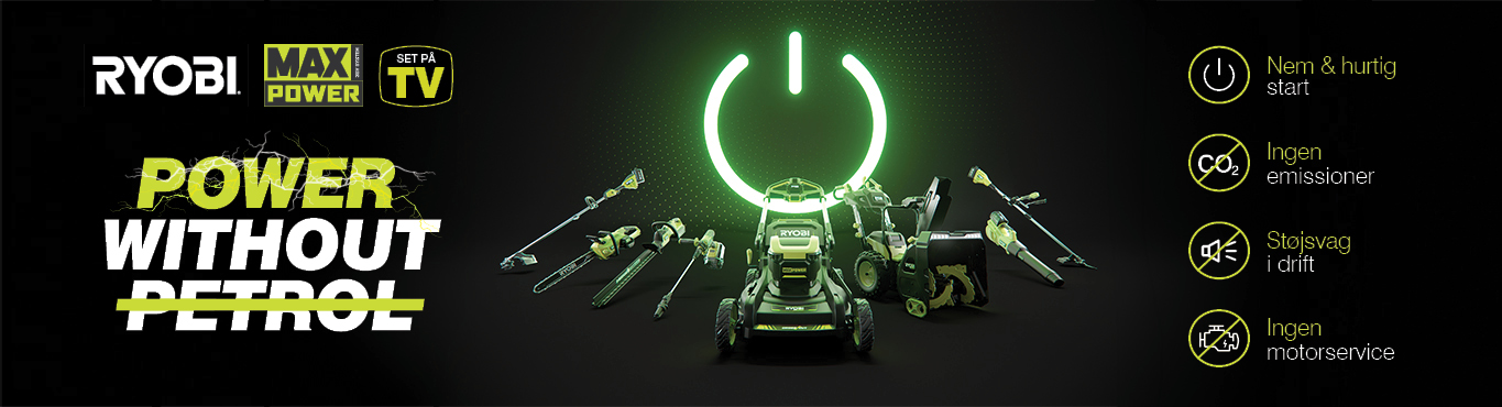 RYOBI® MAX POWER systemet indeholder den mest avancerede motorteknologi, elektronik og batteriydelse så du kan klare ALLE dine opgaver i haven...